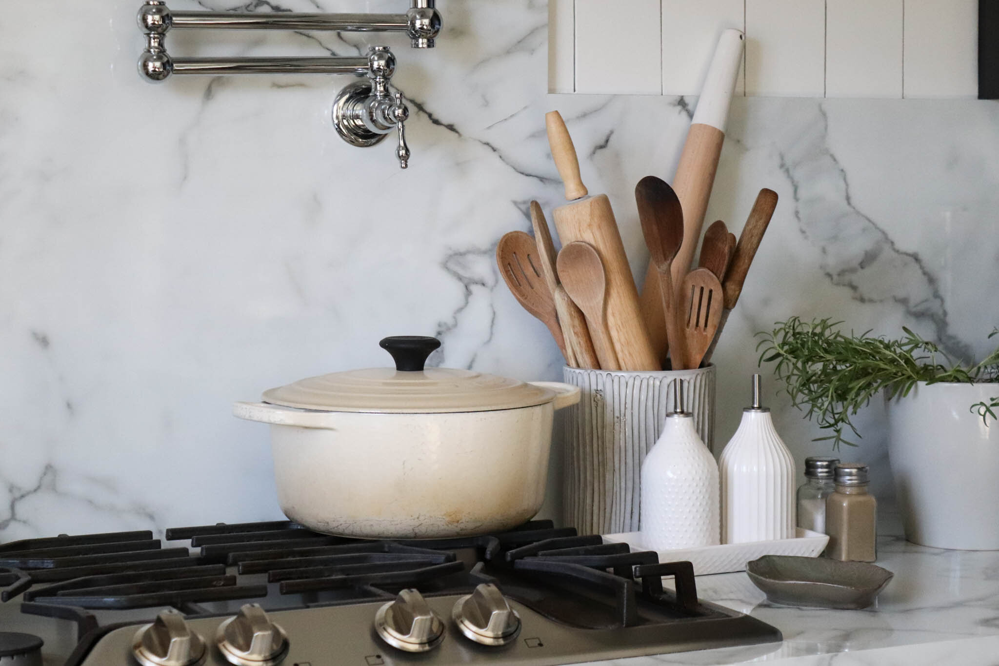 The secret is out: Our kitchen has laminate countertops & backsplash! See how we made it look like real marble!